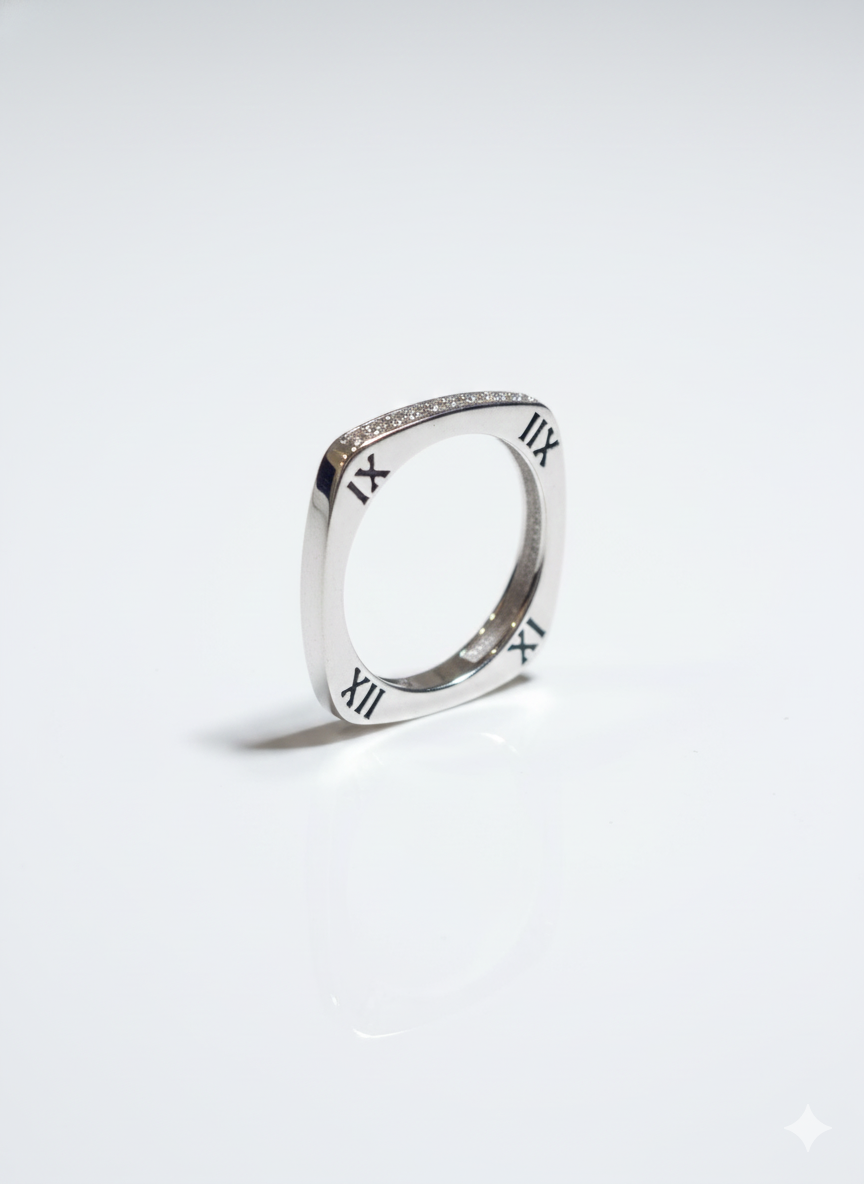 Nova Time Square is where time meets timeless design. Inspired by the precision of classic timepieces, this sculpted band features bold Roman numerals etched along its surface — a subtle tribute to moments that define us.
