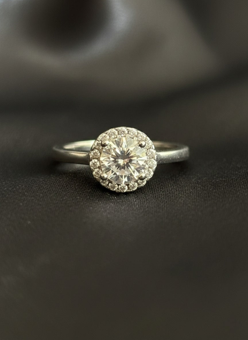 Stone: High-grade zirconia with halo accents